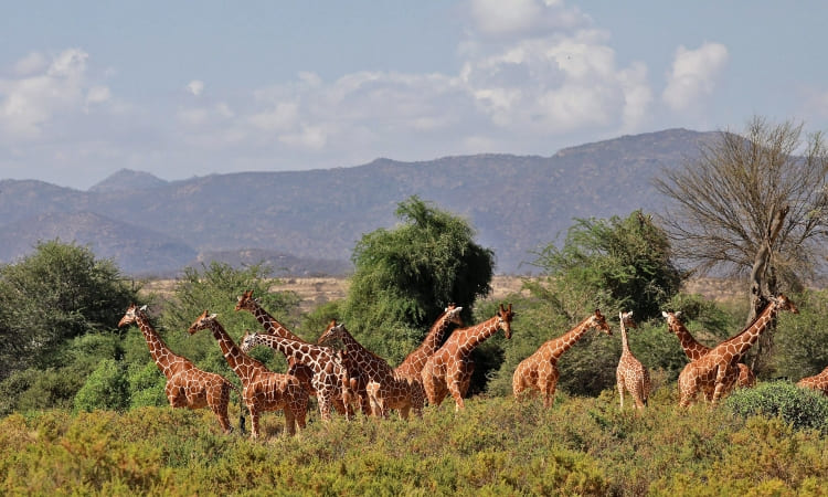 The Samburu National Reserve is located in the Samburu District, North of the Equator, at an altitude ranging from 800 to 1,230 meters above sea level and it covers an area of about 165-square kilometers, equivalent to 64 sq miles. The reserve is part of a much larger eco system which includes the bordering Buffalo Springs and Shaba National Reserves. Buffalo Springs covers an area of approximately 131sq km and Shaba covers an area of approximately 239sq km. Samburu is characterized by a desert and semi-desert region with a dry and warm climate; the Southern border of the reserve is demarcated by the Ewaso Nyiro River, that is the only permanent source of water in this protected area, even during the dry season; from this river depends the survival of all the animals in the reserve.